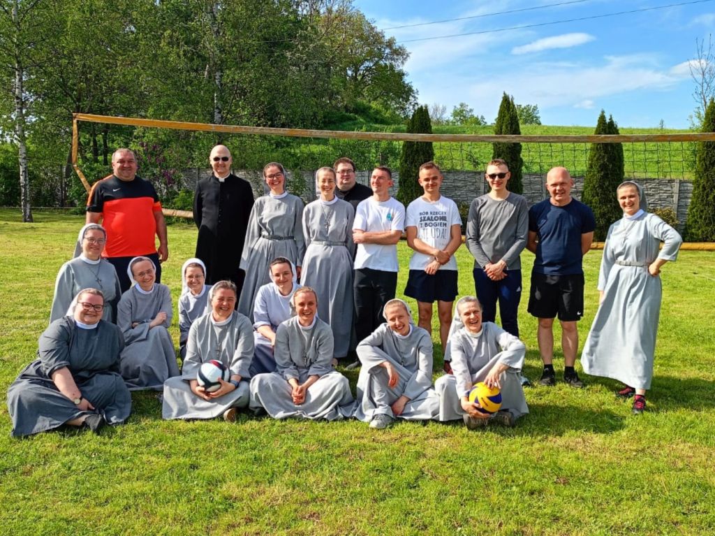 Po obiedzie na ogrodowym boisku rozegrano tradycyjnie towarzyski mecz siatkówki. Swoich sił próbowali przede wszystkim przedstawiciele młodszego pokolenia sióstr i braci. Mecz przyniósł wiele wspaniałych emocji i radości, co można w jakiejś części zobaczyć na załączonych poniżej zdjęciach.