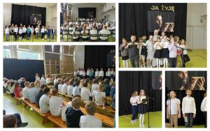 Dzieci z klas 1-3 od kilku tygodni ćwiczyły piosenki, które związane były ze zmartwychwstaniem Jezusa. Utwory były pełne nadziei i radości. Dzieci zaangażowały się całym sercem w śpiew.